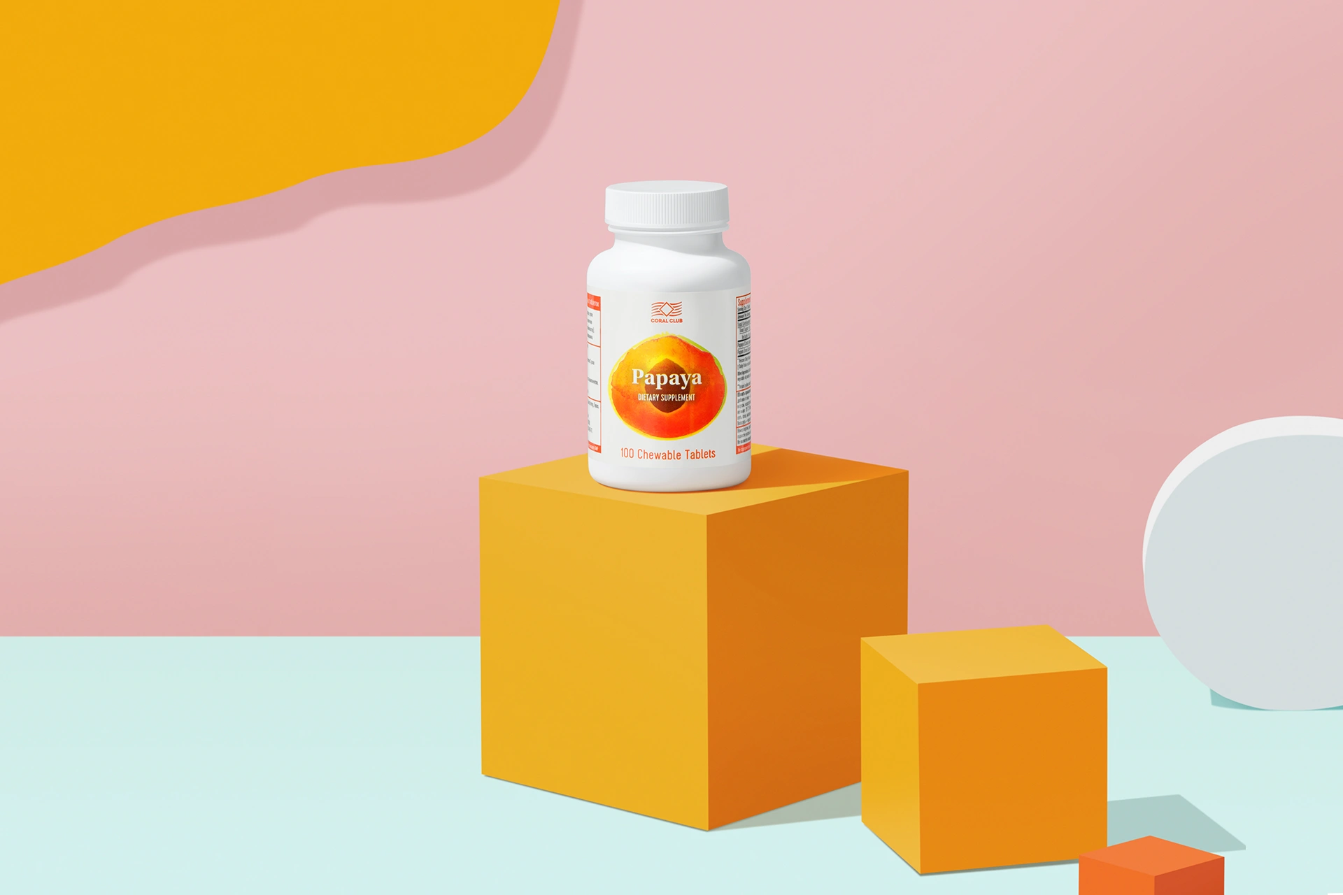 Papaya (fruit) powder 30 mg; Papain 3 mg; other ingredients.